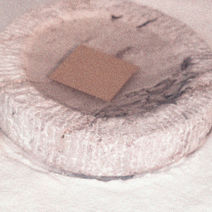 Materialien: Mehl, Kalksteinschalen, Wasser, Blattgold, Glas